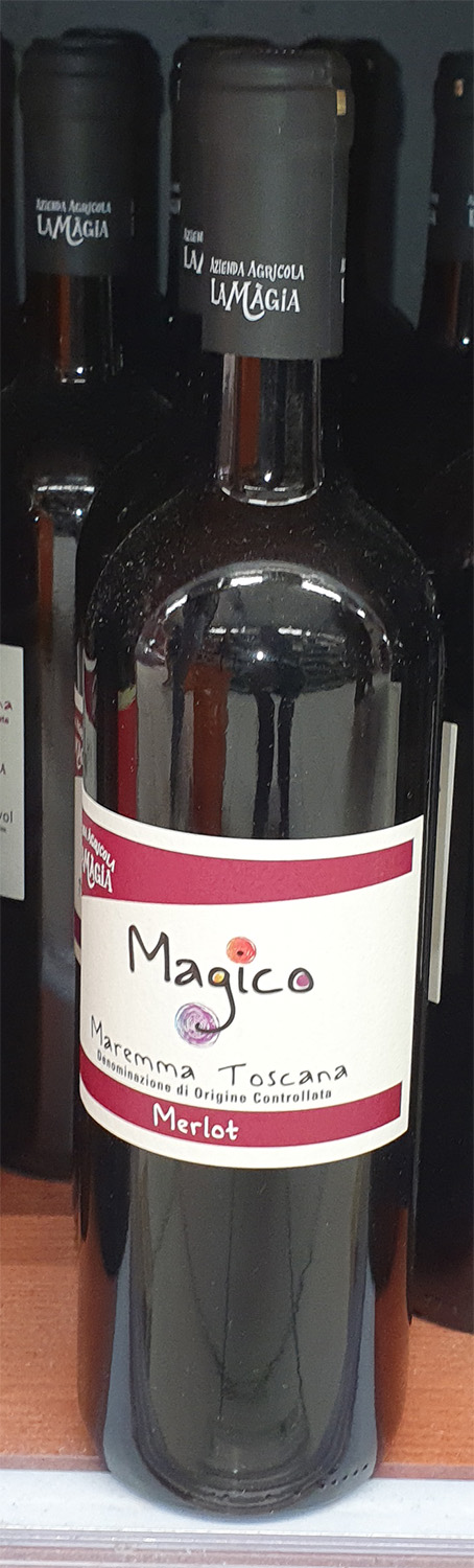 Vino con uve Merlot in purezza. Il colore è rosso rubino con grande consistenza. Al naso è intenso e abbastanza complesso, emergono profumi di ciliegia matura, viola e sentori speziati di vaniglia. In bocca si sente il grado alcolico, un vino decisamente più spostato verso l'acidità e il tannino. Ideale con carni rosse da lunga cottura e cibi con grande corpo come il vino.